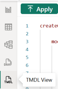 To access TMDL view, simply click the TMDL view button at the top left side of the screen.